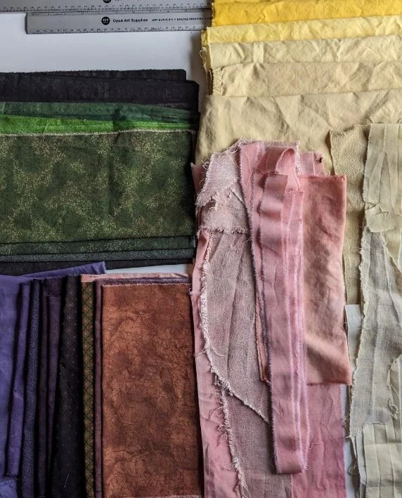A new year, and an opportunity for another fresh start, so I have begun a new slow stitching project. I expect it to take me months! I am using up some natural dyes collected over the years: madder, logwood, saffron, Hopi tea, turmeric and onion skins. I selected about a kilo of recycled cotton or linen pieces and scraps, because both are plant fibres.